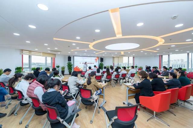 詹浩玲介绍了党员活动中心筹建过程及建设意义,党员活动中心主要功能区划分为接待区、展示区、自主学习区、入党宣誓区、会议区五个区域,目前该五个功能区已经启用,组织部将发布党员活动中心具体功能介绍和使用规范,定期开展主题沙龙活动。活动中心建设的初心:一是为各基层党组织、党务部门开展各类活动提供场所;二是通过开展沙龙、主题讨论等形式为党务工作者、党员、人才搭建相互学习、交流、合作平台;三是充分发挥宣教阵地功能更好地管理和服务党员。同时呼吁各基层党组织充分利用好党员活动中心平台组织学习、开展活动,实现中心资源利用最大化,努力把党员活动中心建设成党员之家、教师之家。