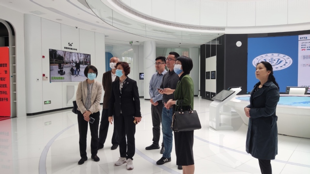 座谈会后,在唐红梅的陪同下,蒋碧艳一行参观了上海健康医学院图书馆《中国共产党的红色医学教育》展览,走访了上海市智能医疗器械与主动健康协同创新中心。蒋碧艳一行对中国共产党领导医学教育发展所取得的成绩表达了由衷的赞赏,对我校产学研医工交叉所取得的办学成绩表示衷心的祝贺。