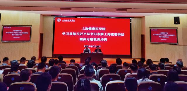 本次培训主题是学习贯彻习近平总书记考察上海重要讲话精神专题教育培训的重要一课,旨在广大干部、人才进一步深入学习习近平总书记关于教育的重要论述,更加深刻领悟建设教育强国的重大战略意义以及高等教育在教育强国中的龙头作用,进一步激发全校师生打好应用型创新人才自主培养“组合拳”,聚焦上海高水平医疗卫生应用型人才培养目标,以高质量医学教育,为国家和上海市健康医疗事业提供有力的人才支撑和服务支撑。