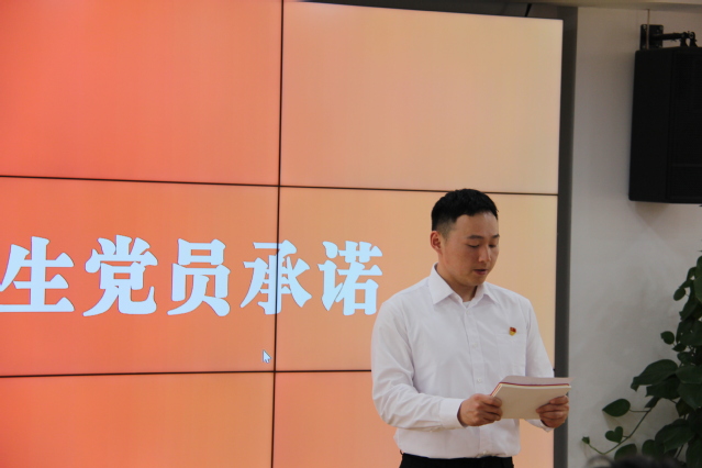 作出一份党员承诺。毕业生党员代表张逸飞同志,曾两次响应国家号召应征入伍,携笔从戎、报效国家,为强军事业贡献自己的力量。他代表全体毕业生党员向党组织做出郑重承诺:将坚守初心,铭记党员身份,发挥党员作用,持续展现党员风采,牢记组织嘱托,甘于奉献,追求卓越,为党的事业贡献力量,在人生新阶段继续忠诚于党,清正廉洁,担当有为。