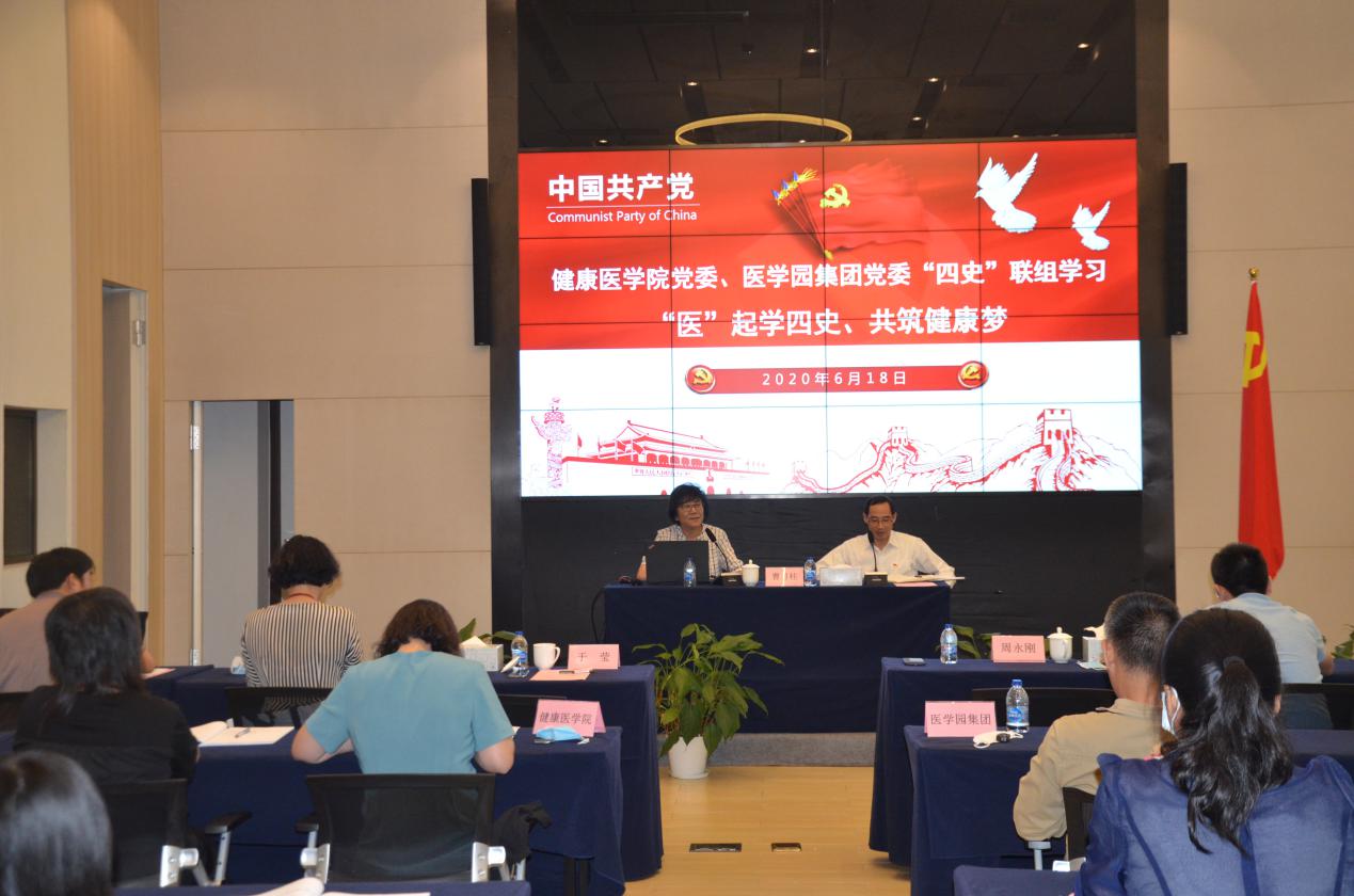 为进一步强化区域化党建,增强党员干部永葆坚定信念、永葆奋斗精神、永葆为民情怀、永葆担当本色,6月18日上午,我校与医学园集团携手举办了以人民健康为主题的“四史”联组学习。校党委副书记于莹,全体党总支、直属党支部书记、组织部相关人员、医学园集团全体党支部书记、党小组组长、医学园区“两新企业”党组织干部等70余人参加了本次活动。