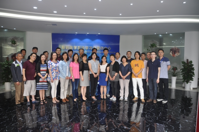 联谊会上,两位主委介绍了各自的盟员,盟员们彼此很快相互熟悉,在和谐愉快的气氛中深入交谈。随后,上海健康医学院组织部副部长詹浩玲部长介绍了上海健康医学院的概况、历史沿革、校区系部以及学院今后的学科发展。民盟上海市卫生计生委副主委顾峻向各位盟员解读了最新版的中国居民平衡膳食宝塔,深入浅出地向大家解读了宝塔每层的食物种类、食物量以及注意事项,使大家知晓了如何做到平衡膳食合理营养。讲解结束后,盟员们在顾峻副主委的带领下参观了上海健康医学院崭新的校园以及近期新建成的基础医学器官系统互动学习中心,参观期间盟员们在3D、4K、AR、VR技术支持下亲历“实时解剖”,体验了先进的“数字人体”解剖中心。座谈和参观活动增进了两个委员会盟员之间的了解,加深了感情,在专业领域谋求更多合作,为民盟今后的合作课题研究、社情民意打下了更广泛的基础。