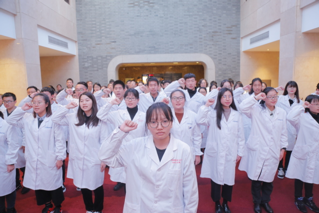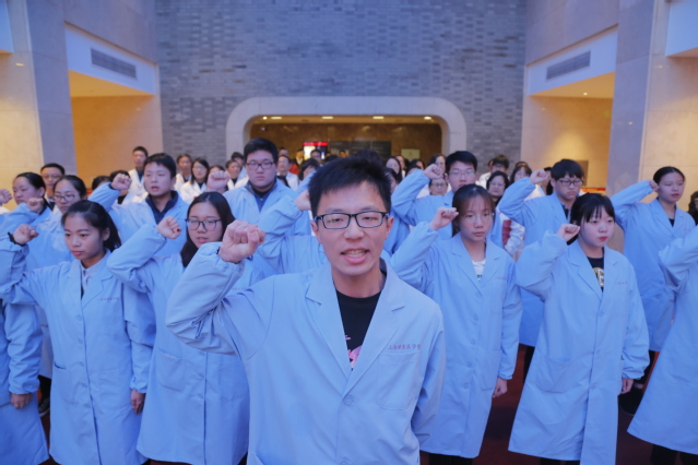 此次活动是学校开展“不忘初心、牢记使命、贯彻落实党的十九大精神”学习实践活动的开题篇,通过重温誓词、职业宣誓、原创朗诵、“情景党课”、学新党章等方式把党性教育与职业教育紧密融合,用党性教育激发师生的职业使命,用职业教育进一步强化党员党性,让全校师生不忘医护初心,牢记健康使命,为人民群众提供全方位全周期健康服务,为实施健康中国战略贡献力量。(党委组织部)
