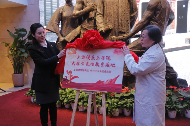 上海健康医学院全体党组织书记、发展对象、入党积极分子百名师生进行的一场深刻地党性洗礼。上海健康医学院党委书记郑沈芳、二大纪念馆副馆长尤玮共同为“上海健康医学院—中共二大纪念馆大学生党性教育基地”揭牌,解放日报发行中心主任朱长元为健康医学院赠送《解放日报》珍藏版党章。在场全体党员在郑沈芳书记的带领下,重温入党誓词,参观各展厅,聆听了明灯讲坛微党课。校党委书记在讲话中强调,各级党组织要用好中共二大会址纪念馆这个教育基地,探索新形势下党性教育的新途径、新方式,健康人要“不忘初心、牢记使命”,为人民健康事业不懈努力。