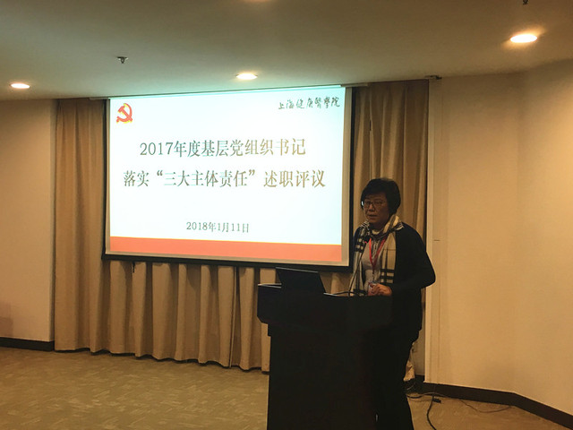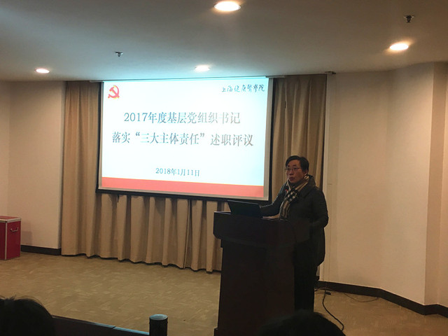 根据市教卫工作党委关于开展党组织书记落实“三大主体责任”述职评议考核的工作要求,1月11日,我校召开2017年度基层党组织书记落实“三大主体责任”述职评议考核会议。校党委书记郑沈芳,校党委副书记、纪委书记李明磊,校党委副书记于莹,各直属党支部书记,各党总支书记和副书记,各二级学院教工及学生党支部书记共50余人参会。会议由组织部部长郭戎静主持。